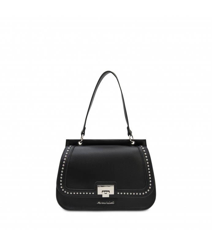 Sac de taille moyenne avec bandoulière réglable et amovible. Petits clous décoratifs sur le devant. Fermeture à glissière et à boucle.