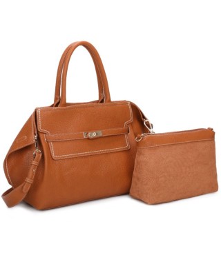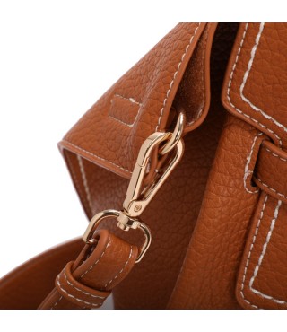 Grand sac à bandoulière en simili-cuir. Composé d'un seul compartiment avec fermeture pivotante. Équipé d'une pochette et d'une bandoulière amovible. Sans logo ni lettrage.