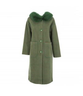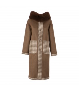 Manteau d'hiver long réversible avec deux grandes poches latérales et un col en fausse fourrure. Fabriqué en matière synthétique.