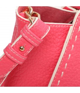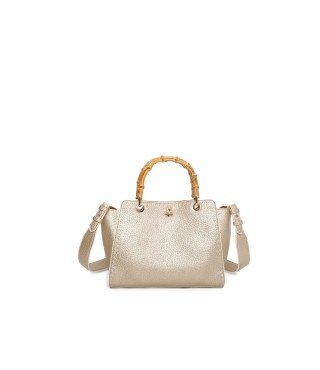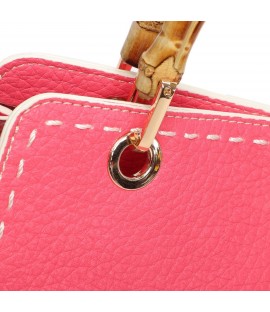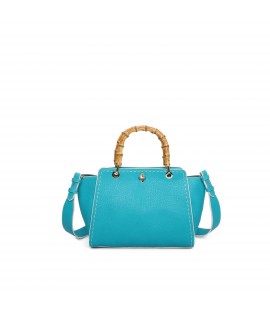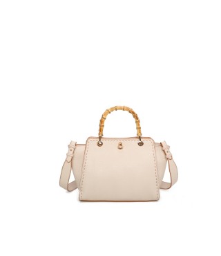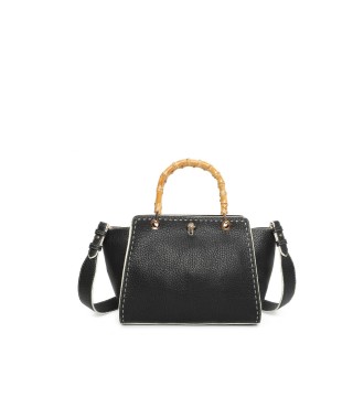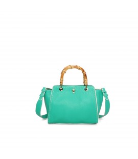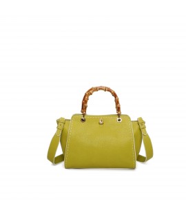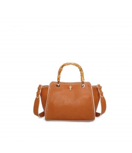 Sac à main en simili-cuir souple de taille moyenne avec bordure contrastée. Poignée en bambou et bandoulière amovible en simili-cuir.