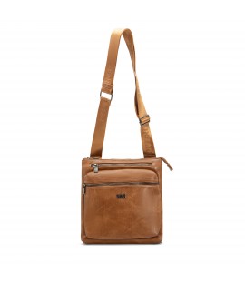 Sac à bandoulière pour homme en PU avec fermeture à glissière et poche avant. -