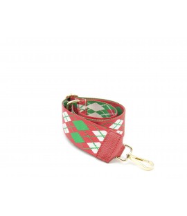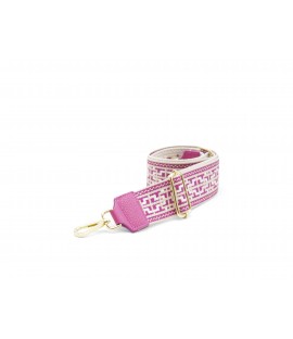 Tracolla in tessuto con dettagli in vera pelle Made in Italy. Altezza di 5 cm e lunghezza regolabile tra 87/127 cm. -