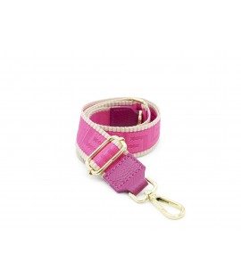 Tracolla per borse, in tessuto con dettagli in vera pelle e metallo colore oro. -