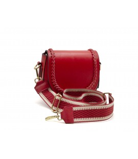 Tracolla in tessuto con dettagli in vera pelle e metallo in colore oro Made in Italy. -