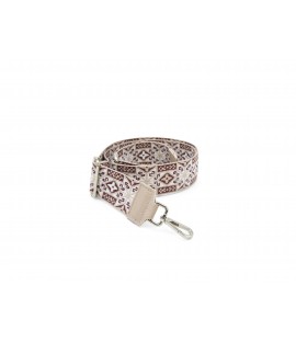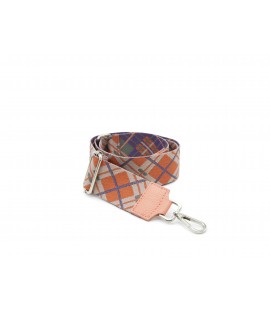 Tracolla in tessuto con dettagli in vera pelle Made in Italy. Altezza di 5 cm e lunghezza regolabile tra 87/127 cm. -