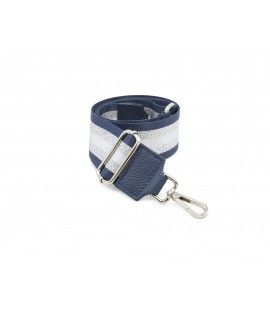 Tracolla per borse, in tessuto con dettagli in vera pelle e metallo colore argento.