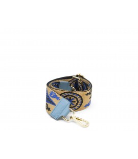 Tracolla per borse, in tessuto con dettagli in vera pelle e metallo colore oro. -