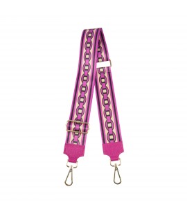 Fabric shoulder strap with genuine leather details and gold metal hook