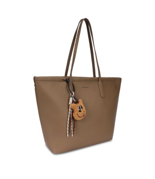 Borsa a spalla in ecopelle con due manici lunghi e chiusura a zip. Non è presente la tracolla ma un simpatico charme.