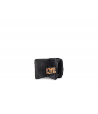 Portafoglio inPortafoglio in PU piccolo e compatto. Un area portatessere con chiusura a bottone. Un area porta monete con chiusura a zip
