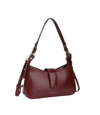 Borsa in sintetico con pattina. Doppia chiusura magnetica e zip, ha una manico di medie dimensioni e una tracolla regolabile.