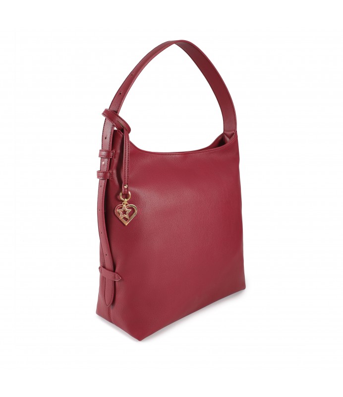 Borsa hobo in ecopelle con chiusura a zip. Manico lungo regolabile. Charme in metallo sul lato.