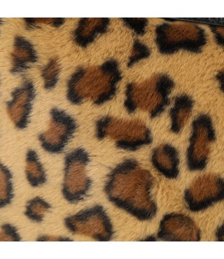 Elegante borsa a mano in eco-pelliccia effetto leopardo, arricchita da dettagli in pelle nera. Perfetta per completare look di tendenza con stile e raffinatezza.