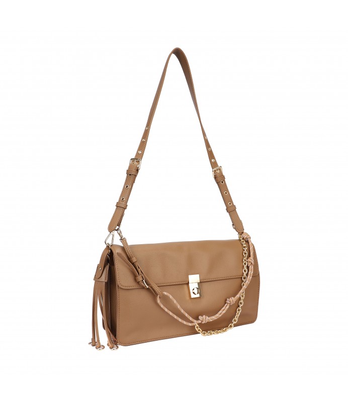 Borsa a tracolla versatile con chiusura a girello, dotata di tracolla regolabile e dettaglio catena intrecciata per un tocco di stile.