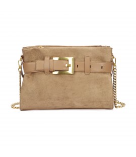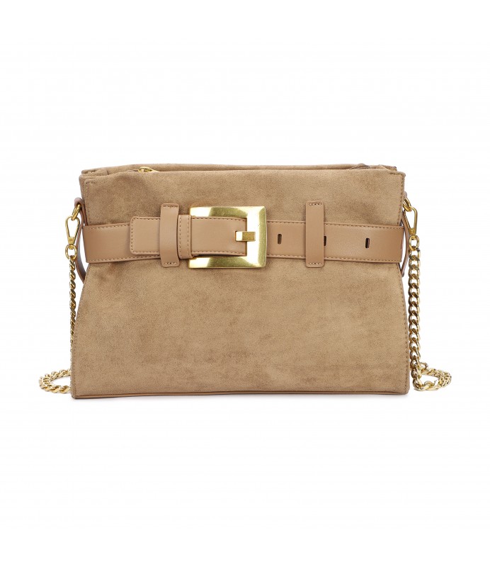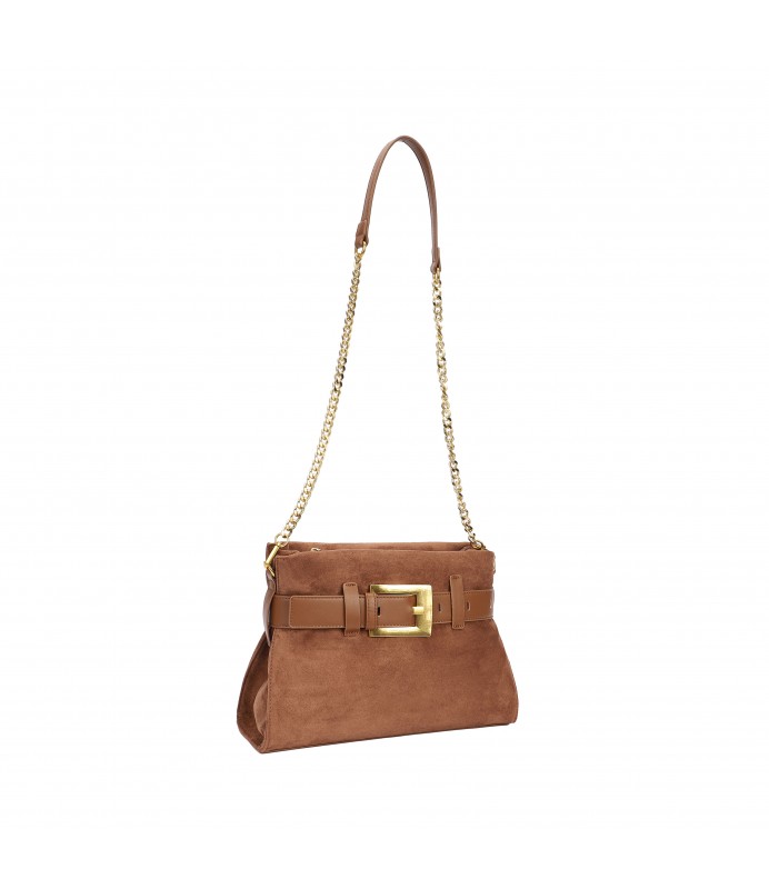 Borsa a spalla con tracolla a catena e dettaglio fibbia frontale. Pratica e versatile, ideale per ogni giorno.