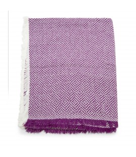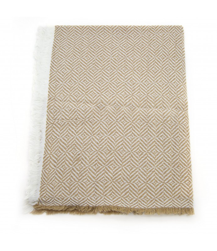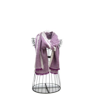 Sciarpa a fantasia geometrica bicolore con bordo sfilettato. Composizione: 78%PC 9%WO 4%VI 4%WP 3%PL 2%PA