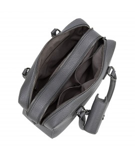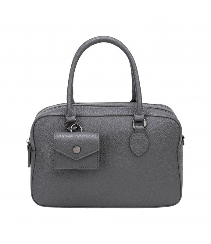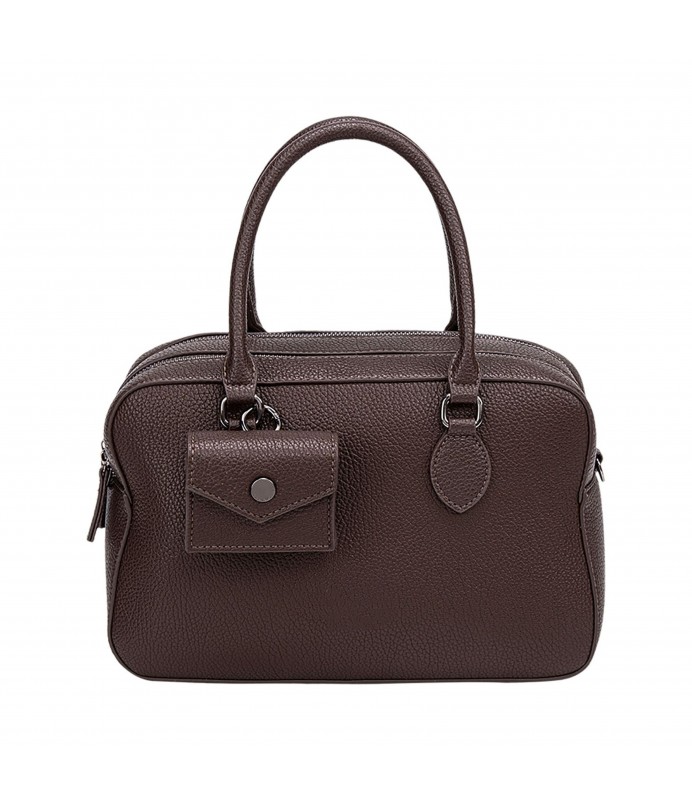 Borsa a mano con tracolla rimovibile e regolabile. Presenta una forma squadrata con chiusura a cerniera superiore. Dotata di doppio manico e un piccolo portamonete o accessorio agganciato a uno dei manici. Realizzata in materiale testurizzato.