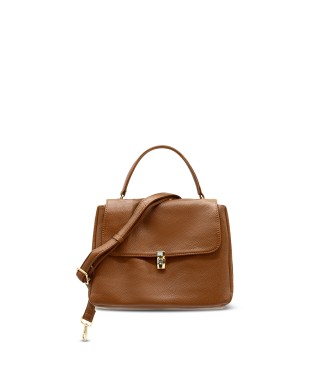 Una borsa a mano strutturata e funzionale, caratterizzata da linee pulite e una chiusura a patta con dettagli metallici. Dotata di un manico superiore e di una tracolla regolabile, si adatta perfettamente a ogni esigenza quotidiana.