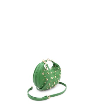 Borsa a mano in similpelle con borchie in metallo colore oro sul fronte e inserto "LOVE" sulla base. Composta di tracolla removibile e chiusura lampo.