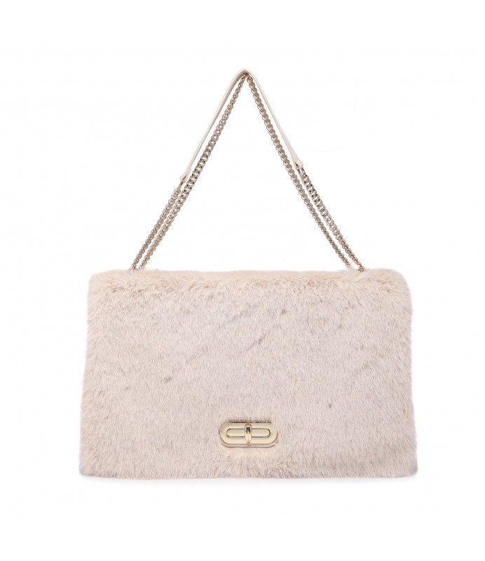 Borsa a spalla in morbida pelliccia sintetica con tracolla a catena e chiusura a girello. Un accessorio distintivo per completare il tuo look con un tocco di stile.