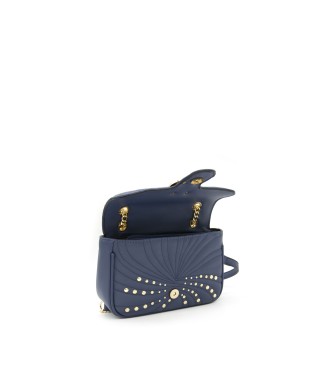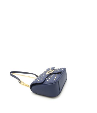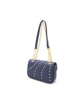 Borsa a tracolla in similpelle a singolo scomparto con chiusura magnetica. Manico a catena in metallo colore oro. Numerose borchie in metallo colore oro sul fronte e sul retro.