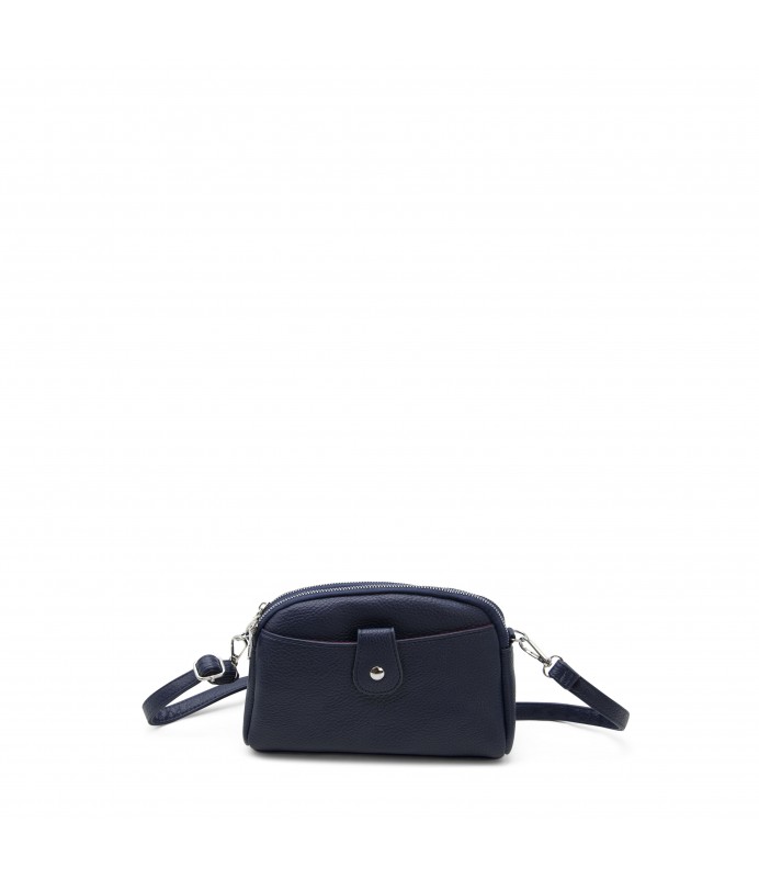 Piccola borsa a tracolla in similpelle a doppio scomparto con cerniera.