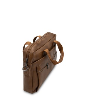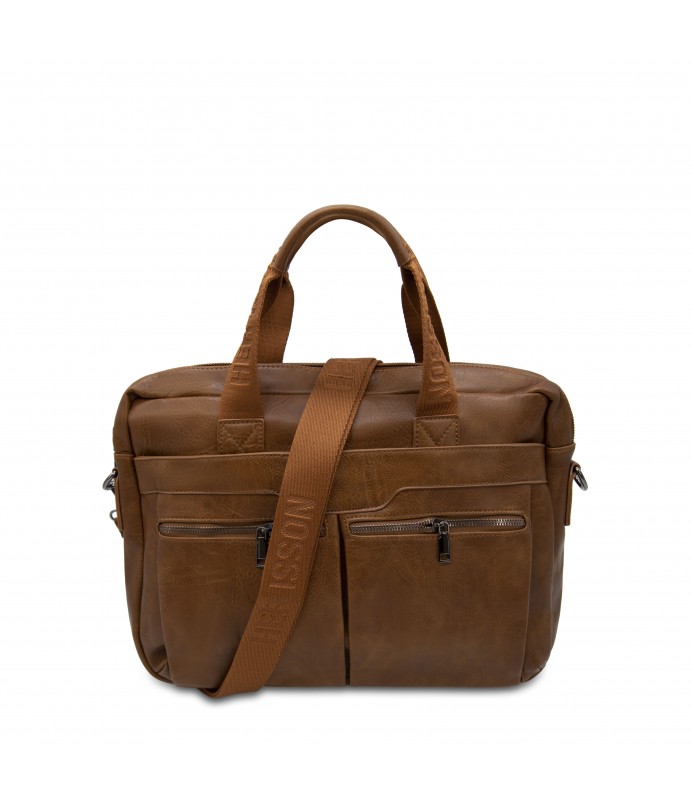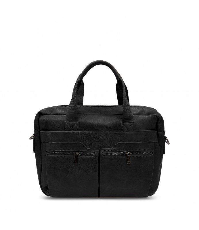 Borsa a mano da lavoro e per computer in similpelle dotata di una tracolla in tessuto.