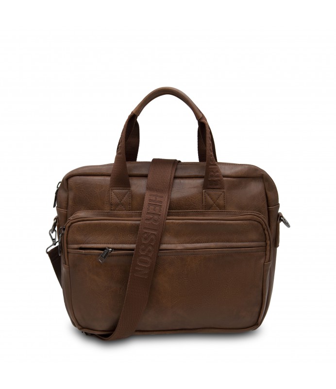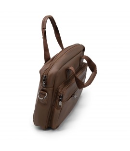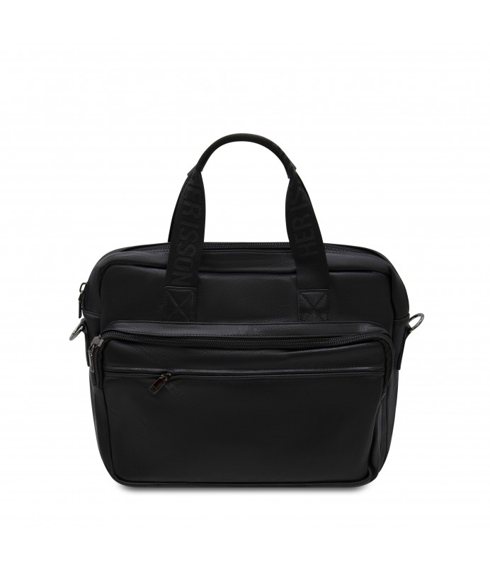 Borsa da lavoro e per computer in similpelle dotata di una tracolla in tessuto.