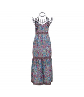 Vestito lungo da spiaggia con motivo floreale azzurro-fuxia