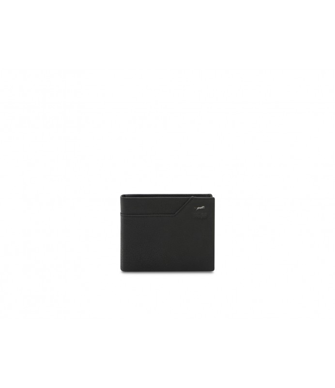 Portafoglio Jaguar in vera pelle con piccolo logo in metallo colore argento sul fronte.