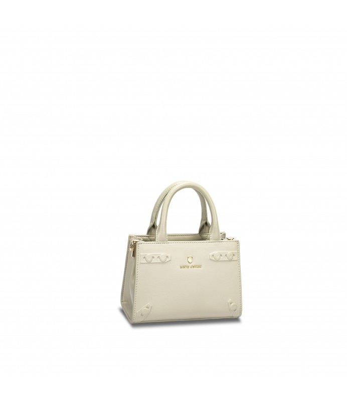 Mini bag semirigida in similpelle in tinta unita. Singolo scomparto con cerniera. Presenza di lettering sul fronte.