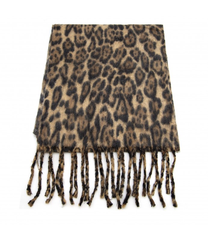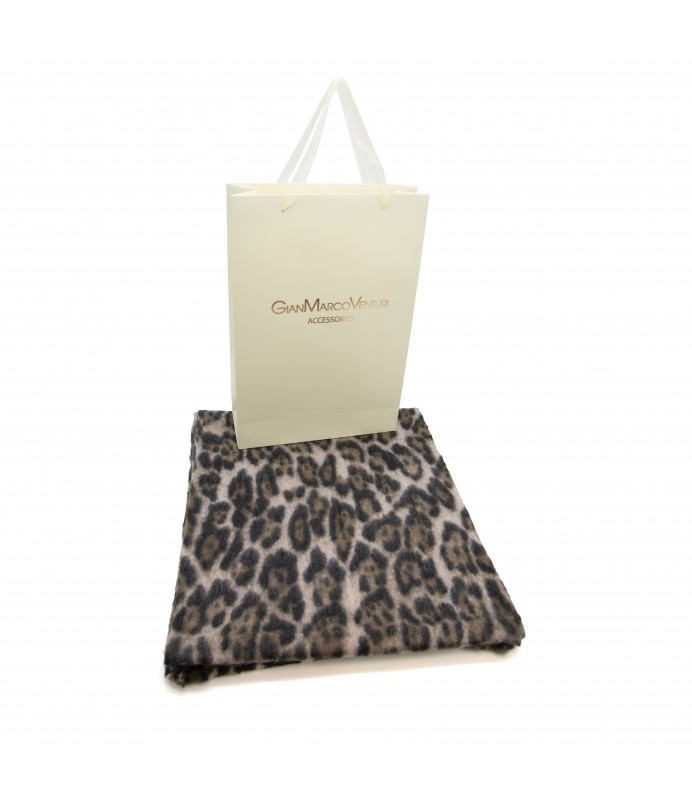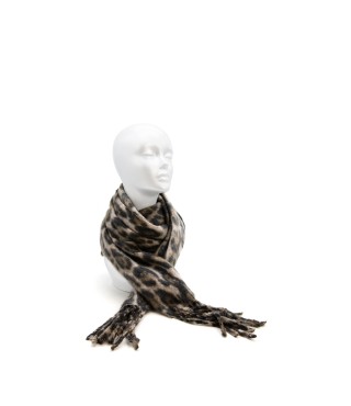 Sciarpa con stampa animalier GMV in poliestere con bordo sfrangiato. Made in PRC.