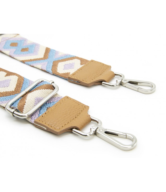 Tracolla per borse, in tessuto con dettagli in vera pelle e metallo colore argento. Altezzi di 5 cm e lunghezza compresa tra 87 cm e 127cm