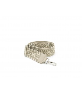 Tracolla in tessuto con dettagli in vera pelle Made in Italy. Altezza di 5 cm e lunghezza regolabile tra 87/127 cm.