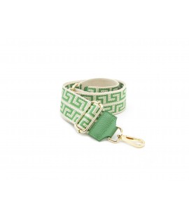 Tracolla in tessuto con dettagli in vera pelle Made in Italy. Altezza di 5 cm e lunghezza regolabile tra 87/127 cm.