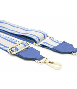 Tracolla in tessuto con dettagli in vera pelle Made in Italy. Lunghezza compresa tra 84-124 cm.