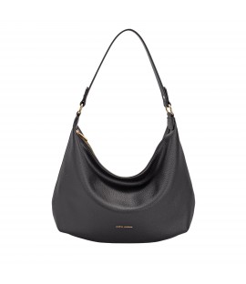 Borsa a spalla a mezza luna, in similpelle in tinta unita. Singolo scomparto con cerniera. Manico a fibbia regolabile. Presena di lettering sul fronte. -