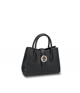Borsa a mano semirigida in similpelle in tinta unita. Logo sul fronte. -