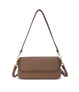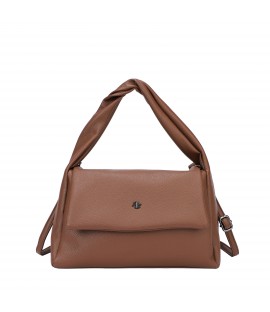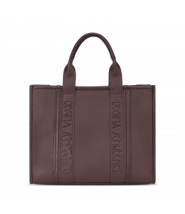 Borsa a spalla in ecopelle con pattina e doppia chiusura magnetica e zip interna. Ha sia un manico di media lunghezza che una tracolla regolabile. Marchio stampato sul retro. -