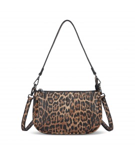 Borsa a spalla leopard con chiusura a zip. Presente un manico di media lunghezza e una tracolla regolabile. -