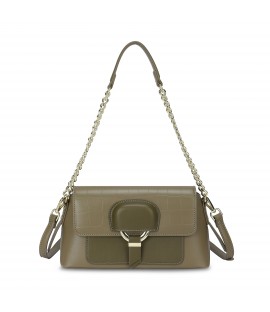 Borsa a spalla con pattina effetto coccodrillo. La pattina nasconde due chiusure una magnetica e una interna a zip. Presente anche una tracolla in pu regolabile. -